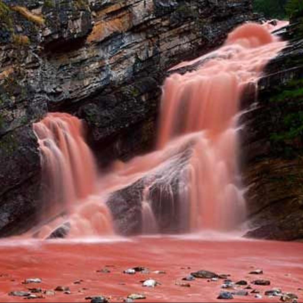 Alberta's Waterton Lakes National Park is the site of Cameron Falls, a stunning waterfall that flows with clear waters on regular days. During periods of abnormally heavy rain, however, the waters are stirred up with a sediment called argolite, which emits a pink colour when light is reflected on it. The result is a pink waterfall that collects into a reservoir of the same colour.